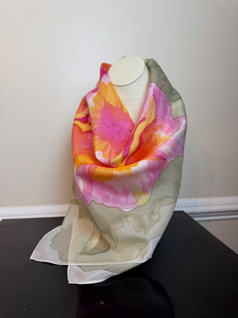 Painted and dyed silk scarves