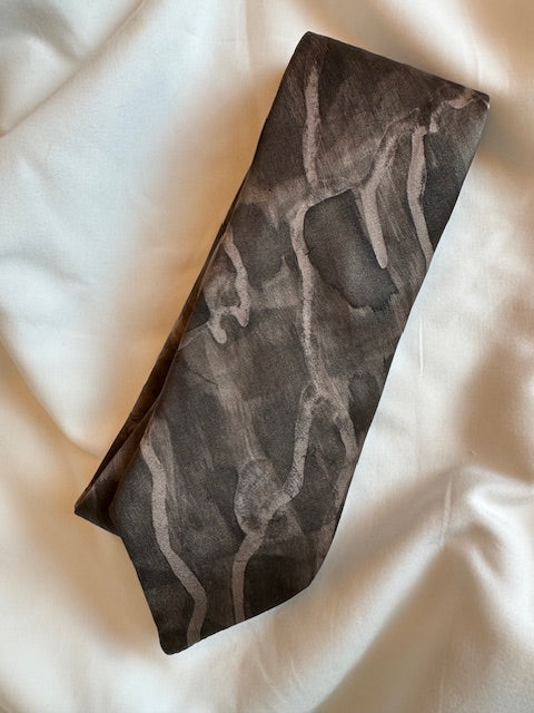 Elevate your formal attire with the Silk Tie 5, featuring elegant veins of cream on a dark brown texture. Crafted from premium silk, this tie offers a smooth texture and sheen, perfect for both professional and casual occasions.